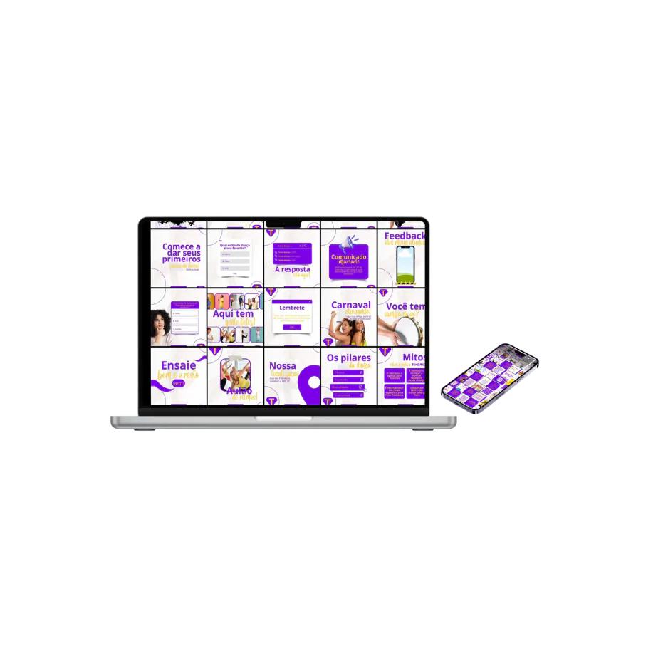 Pare de perder tempo quebrando a cabeça para criar conteúdos! Com este pack exclusivo no Canva, você tem 100 posts editáveis e prontos para personalizar, fortalecer sua marca e atrair mais alunos com uma comunicação profissional.