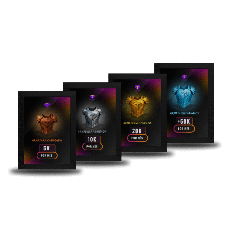 Conquiste reconhecimento real pelo seu impacto financeiro com a dança. As Armaduras são placas físicas entregues na Convenção TooDance aos Heróis que atingem metas mensais consecutivas. Cada armadura representa um nível de conquista, autoridade e transformação real: Armadura Cobreada (5K/mês) – Primeira prova de que você consegue viver da dança com estabilidade. Armadura Prateada (10K/mês) – Faturamento profissional com consistência. Você já se destaca no mercado. Armadura Dourada (20K/mês) – Referência regional. Seu nome começa a ser conhecido e respeitado. Armadura Diamante (50K/mês+) – Elite da dança no Brasil. Você construiu um império com sua metodologia.